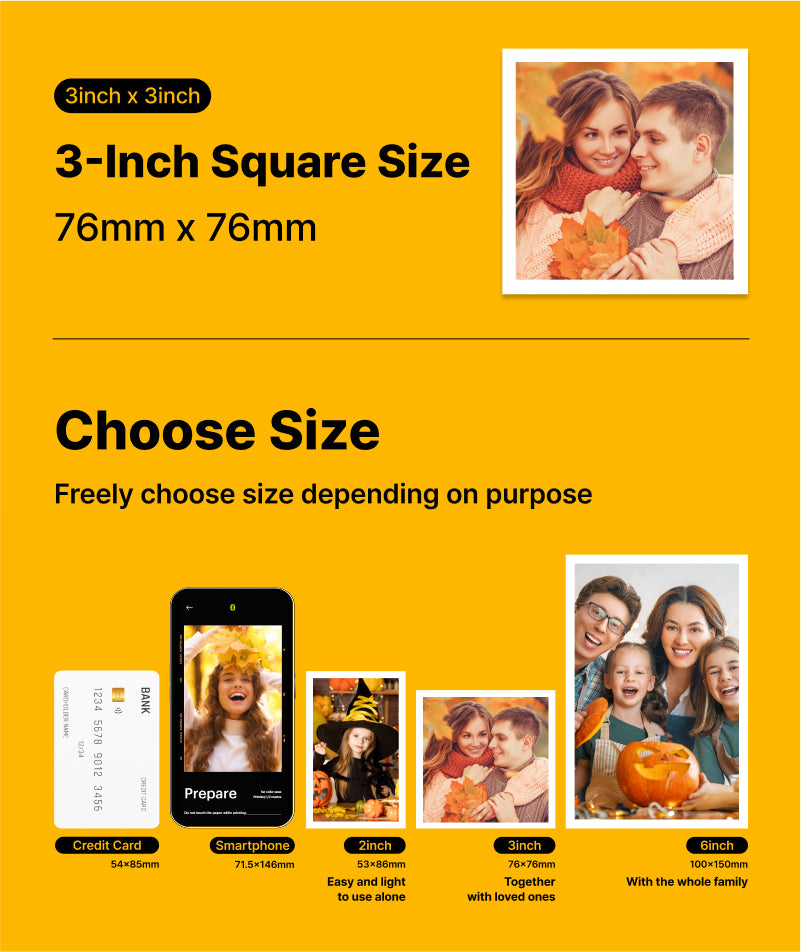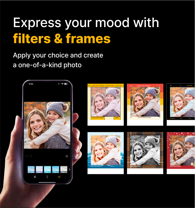 A compact photo printer for 3”x3” square photos—perfect for printing your favorite Instagram shots. Select your favorite pictures from the KODAK PHOTO PRINTER app and print them via Bluetooth.