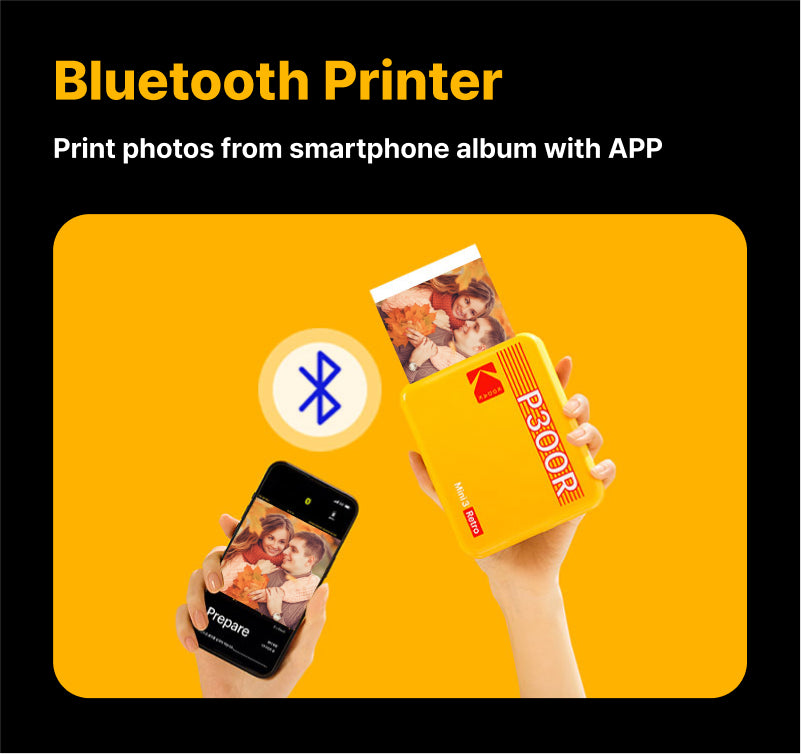 A compact photo printer for 3”x3” square photos—perfect for printing your favorite Instagram shots. Select your favorite pictures from the KODAK PHOTO PRINTER app and print them via Bluetooth.